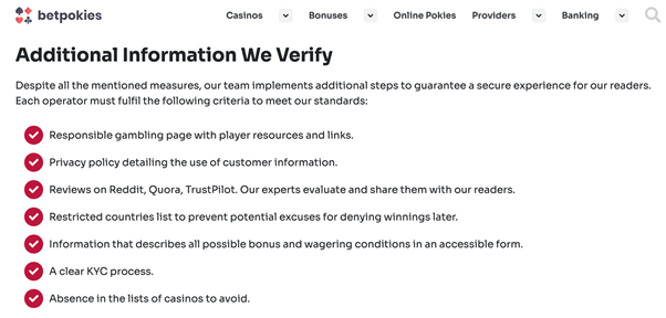 done meticulously, looking closely at each casino’s specifics. The transparency