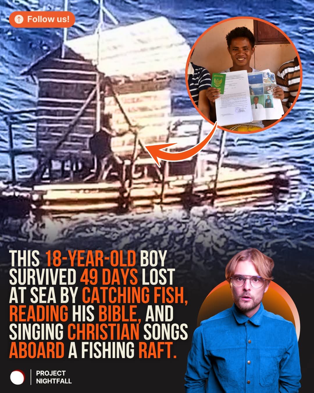 Despite at least ten passing ships failing to spot him, Aldi’s persistence and resourcefulness kept him alive as he drifted thousands of kilometers across the ocean.