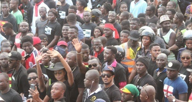 The protestors clad in red and black outfits marched from the Total Filling station opposite the University of Ghana to the Tetteh Quarshie Interchange here in the Greater Accra Region.